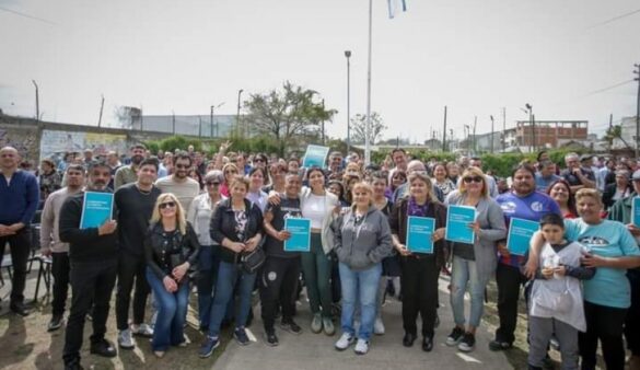 La intendenta de Quilmes, Mayra Mendoza, junto a autoridades bonaerenses, entregó 159 adjudicaciones de terrenos a vecinos de los barrios El Tala, La Paz, IAPI…